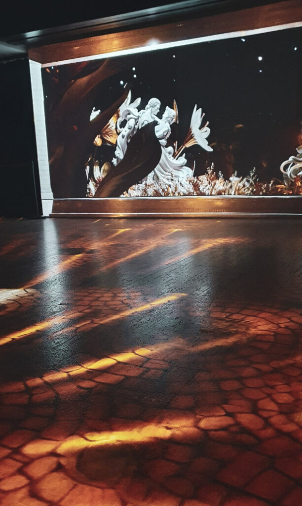 La subsol, am găsit o expoziție imersivă, o proiecție inspirată de ‘’Metamorfozele’’ lui Ovidiu – stăteai relaxat, pe niște pernuțe, și parcurgeai miturile antice, urmărindu-l pe Ovidiu, care ajunge în cele din urmă la Tomis. Exista și un colț dedicat unei experiențe VR, și o expoziție foto prin care puteai intra în pielea diferitelor viețuitoare din Marea Neagră (mi-a plăcut să văd prin ochii delfinilor, broaștelor, păsărilor).