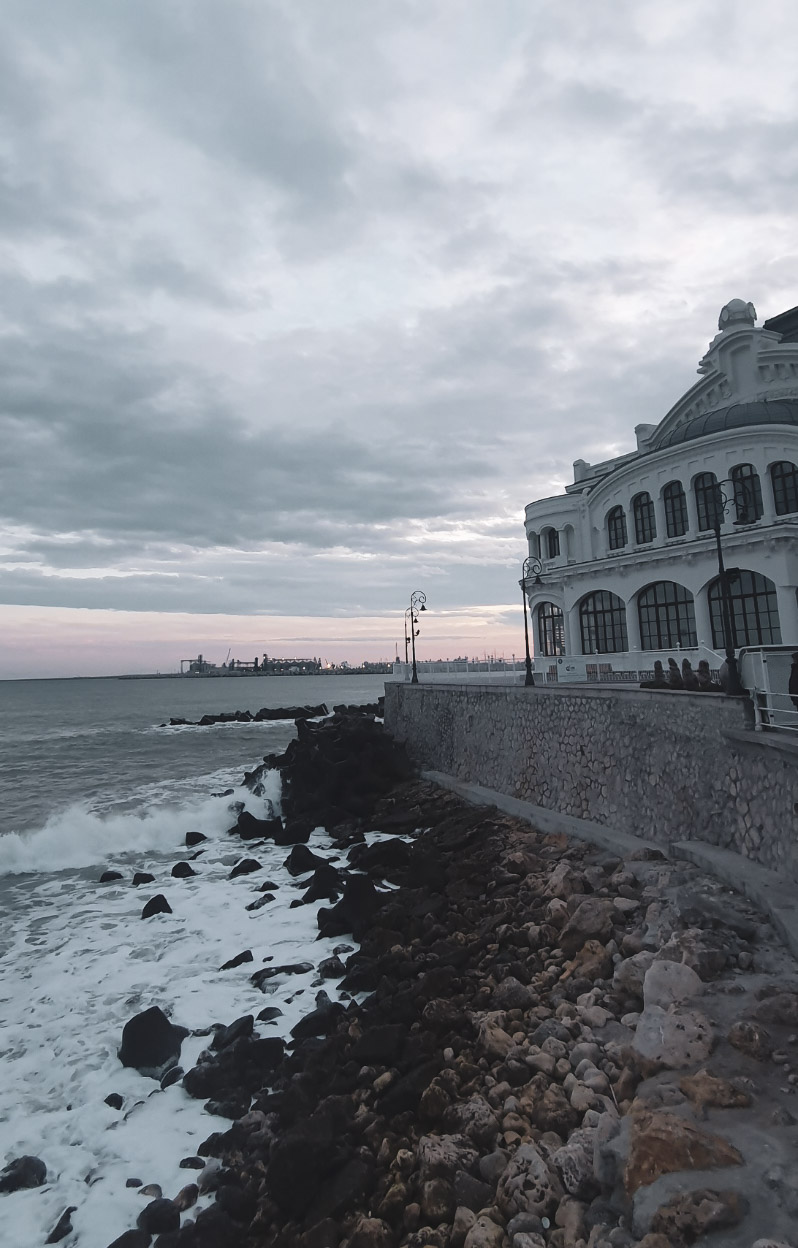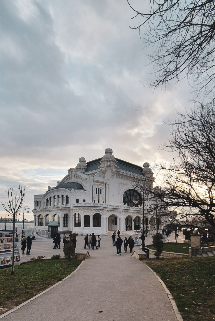 Ori de câte ori am ajuns în Constanța, cazinoul era fie închis pe termen nedefinit, fie în renovare. Știam că a fost recent redeschis, așa că am ținut să-l vizităm și nu ne-a părut rău deloc. Era aglomerat, era încă împodobit de Crăciun, dar avea și ceva care te rupea de timpul prezent. Pe ferestrele Art Nouveau largi din interior vedeai marea, deloc liniștită, care parcă venea spre tine având și ea niște povești de spus. Nu știu dacă va fi deschisă și terasa de deasupra mării, dar, dacă se va întâmpla, e un loc unde aș petrece fără să-mi pară deloc rău câteva ore din viață.